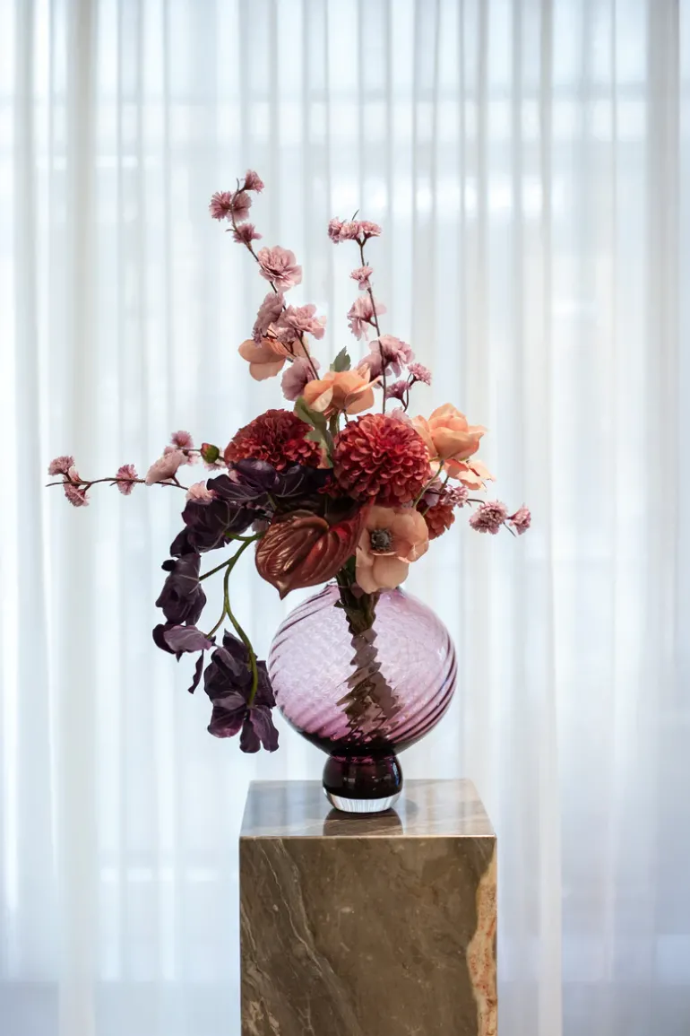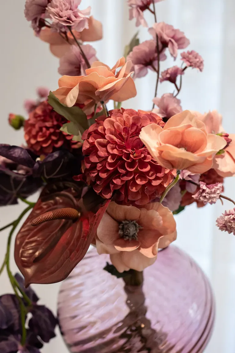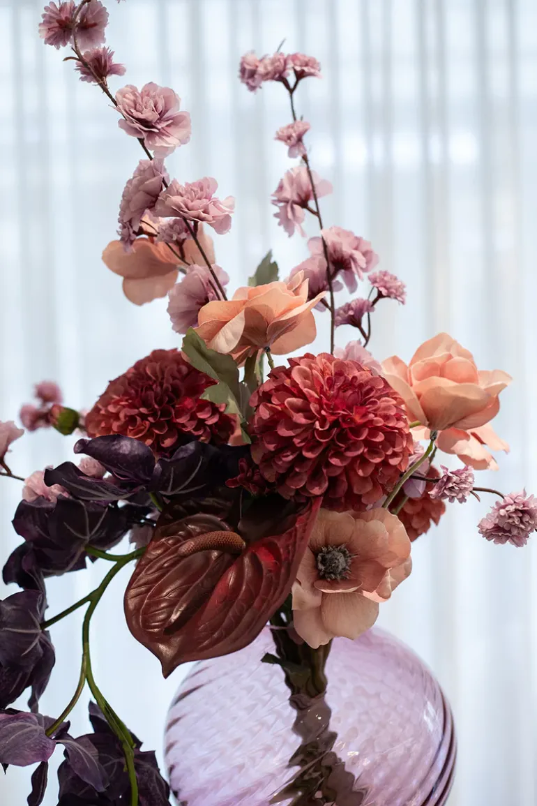 Forny dit hjem med vores eksklusive kunstneriske blomsterbuket. Med sin enestående kvalitet, naturtro udseende og smukke kombination af blomster, vil den tilføje en farverig touch til indretning.