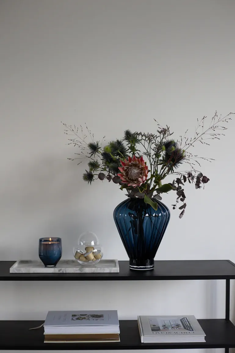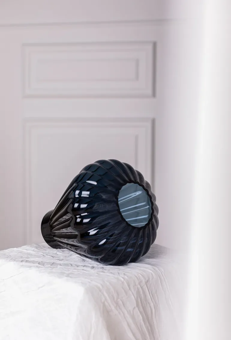 Evelyn Vasen er produceret i Europa og er mundblæst. Den mundblæste teknik er et gammelt og rigt håndværk, der er gået videre i generationer. Vi arbejder meget tæt sammen med vores produktion, for at kombinere vores moderne designs med deres traditionelle færdigheder. Vi omfavner den unikke proces og egenskaber ved produktionen – det betyder, at hvert produkt er unikt, og luftbobler og andre ufuldkommenheder er en del af produktionen, som vi elsker og værdsætter.