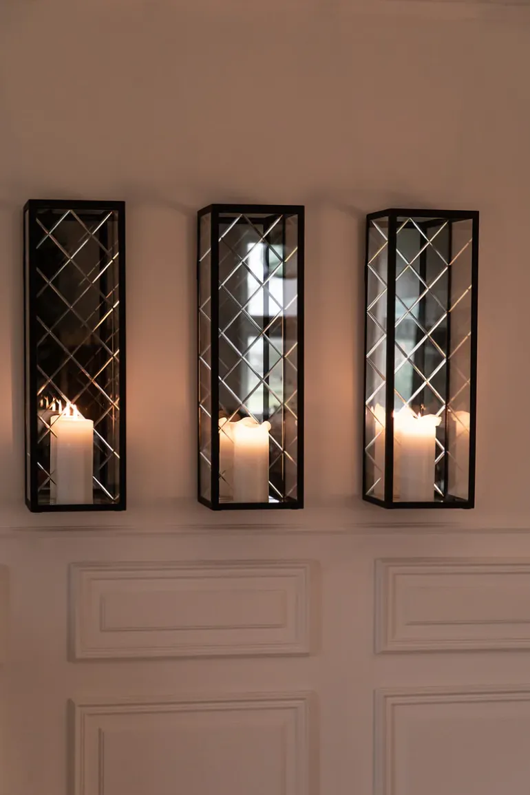 Harlequin Lanternen kommer i 4 størrelser, hvoraf denne variant kan anvendes til at hænge på væggen. Denne Harlequin størrelse har Harlequin spejl i bunden og på bagsiden. Lanternen er åben i toppen og kan ikke åbnes i siderne.