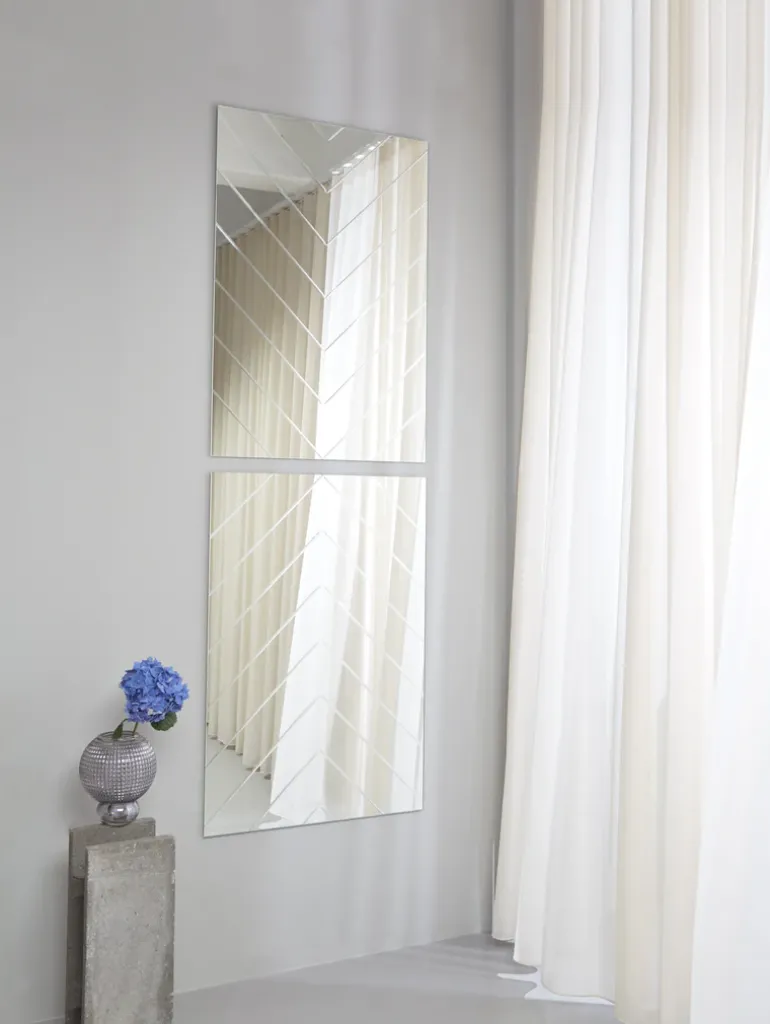 Det facetslebne spejl er inspireret af det klassiske og luksuriøse sildebensmønster. Herringbone spejlet forener det moderne med det klassiske.