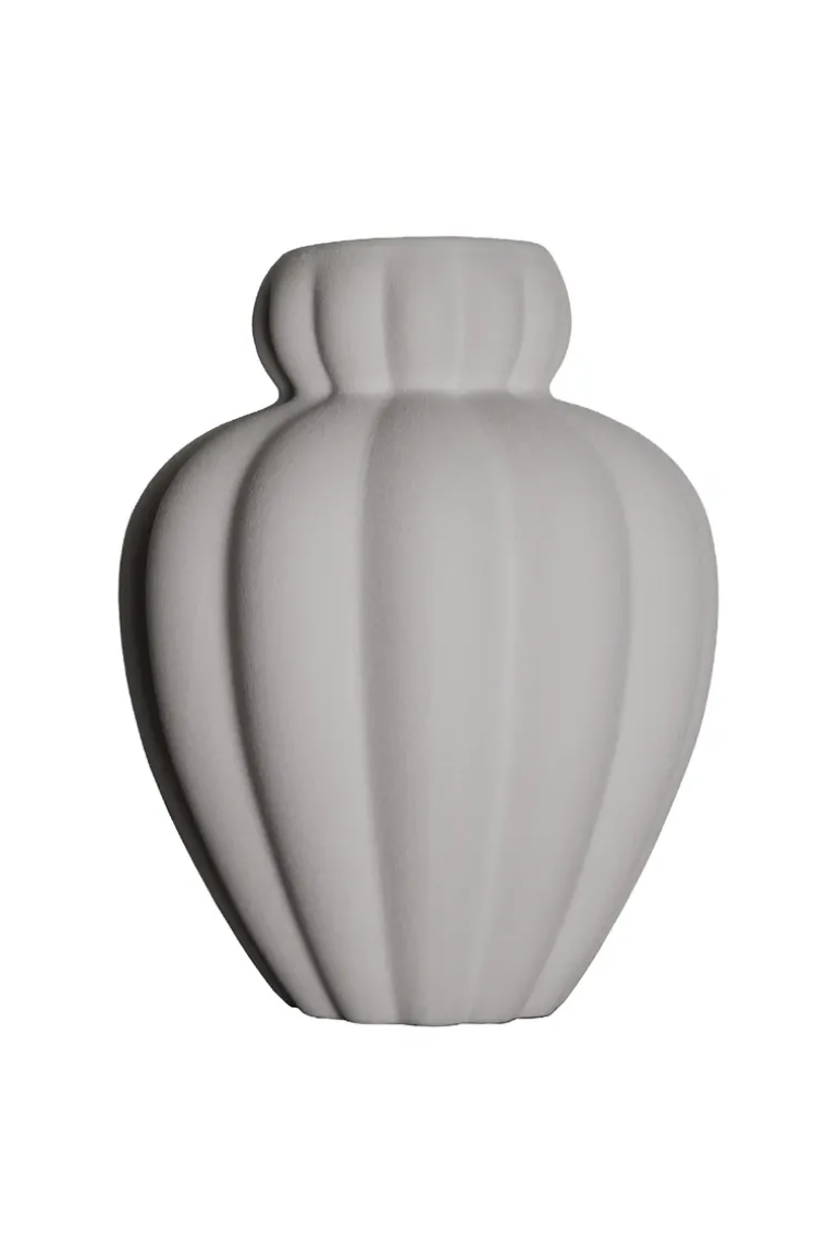 Vasen findes i 4 naturlige farver, og er med sine bølgende linjer og strukturelle rå sand-inspireret overflade en smuk tilføjelse til indretningen.