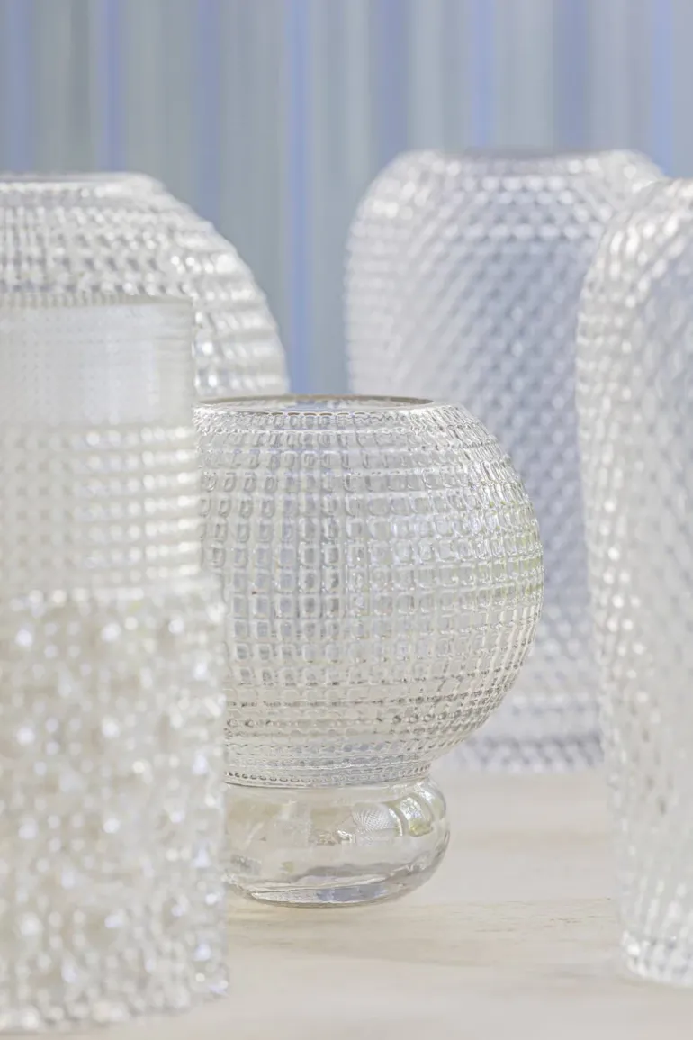 Lav en unik dekor løsning ved at sammensætte Savanna vasen i alle 3 størrelser eller style den på Herringbone bakken sammen med en krystal lysestage.