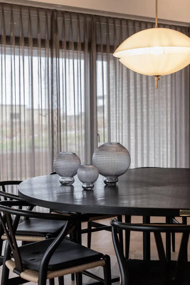 Lav en unik dekor løsning ved at sammensætte Savanna vasen i alle 3 størrelser eller style den på Herringbone bakken sammen med en krystal lysestage.