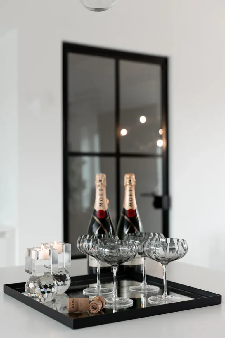 Den kvadratiske Silver antik bakke er designet til at være en eksklusiv og dekorativ tilføjelse, som kan anvendes i alle husets rum. Den unikke spejloverflade og den sorte metalramme forener det moderne med det klassiske.