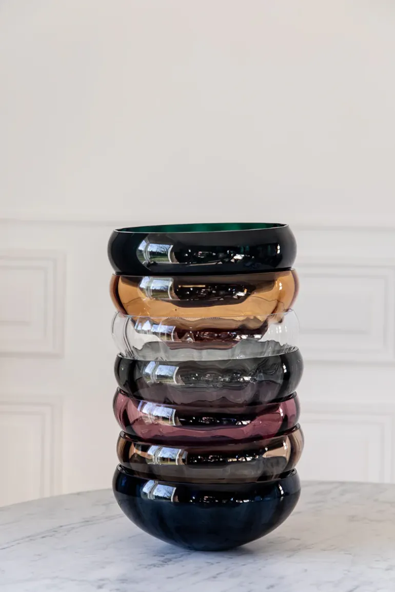 Specktra kollektionen forener traditionelle og rige håndværksteknikker med moderne luksus og elegance. Hele kollektionen er mundblæst og produceret i Europa. På grund af den håndlavede process er hver skål unik. Dette betyder, at der kan forekomme variationer i form af luftbobler, vægt og mønster fra skål til skål, hvilket er en del af håndværket, som vi elsker, værdsætter og beundrer.