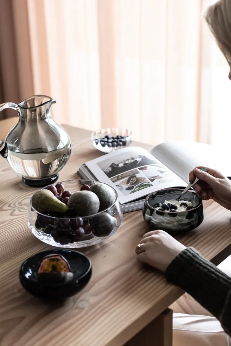 Specktra kollektionen forener traditionelle og rige håndværksteknikker med moderne luksus og elegance. Hele kollektionen er mundblæst og produceret i Europa. På grund af den håndlavede process er hver skål unik. Dette betyder, at der kan forekomme variationer i form af luftbobler, vægt og mønster fra skål til skål, hvilket er en del af håndværket, som vi elsker, værdsætter og beundrer.