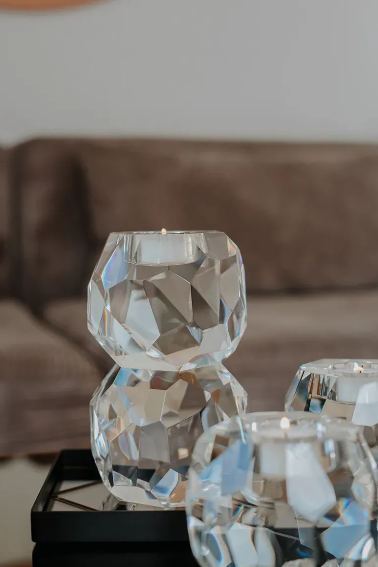 ‘Storm T-Light’ er en kollektion bestående af luksuriøse og dekorative asymmetriske krystal lysestager. Storm Stacked er tilgængelig i 3 unikke farver. Det brede specktrum af farvevarianter sikrer et utal af unikke styling muligheder.