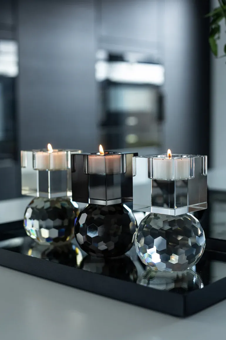 ‘Shadow T-Lights’ er en kollektion bestående af luksuriøse og dekorative krystal lysestager, som er tilgængelig i 8 unikke farver. Det brede specktrum af farvevarianter sikrer et utal af unikke styling muligheder.