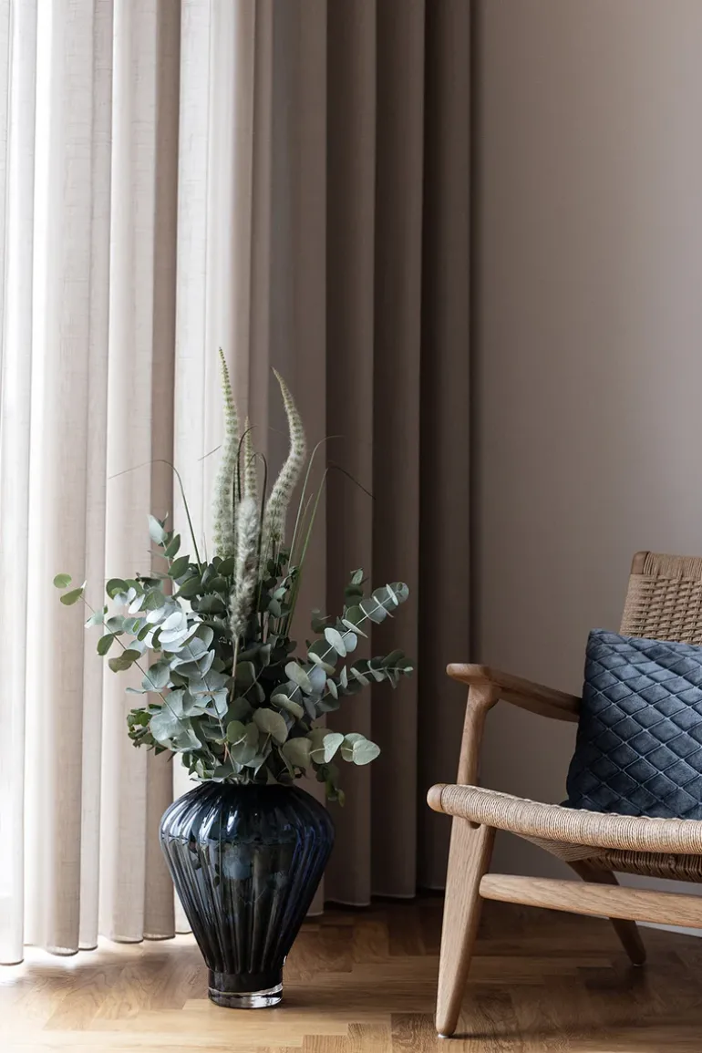 Evelyn Vasen er produceret i Europa og er mundblæst. Den mundblæste teknik er et gammelt og rigt håndværk, der er gået videre i generationer. Vi arbejder meget tæt sammen med vores produktion, for at kombinere vores moderne designs med deres traditionelle færdigheder. Vi omfavner den unikke proces og egenskaber ved produktionen – det betyder, at hvert produkt er unikt, og luftbobler og andre ufuldkommenheder er en del af produktionen, som vi elsker og værdsætter.