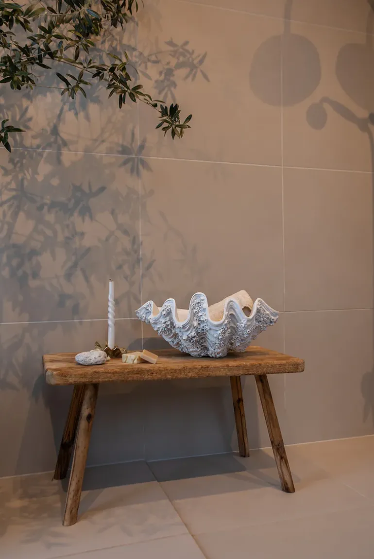 Naya skålen er en elegant kombination af moderne æstetisk design og inspiration fra naturens smukke elementer. Fremstillet af resin med en overflade inspireret af muslingens fine struktur, tilføjer skålen en organisk og sofistikeret detalje. Med sit unikke udtryk fungerer Naya skålen både som et funktionelt element og som et dekorativt statement-piece.