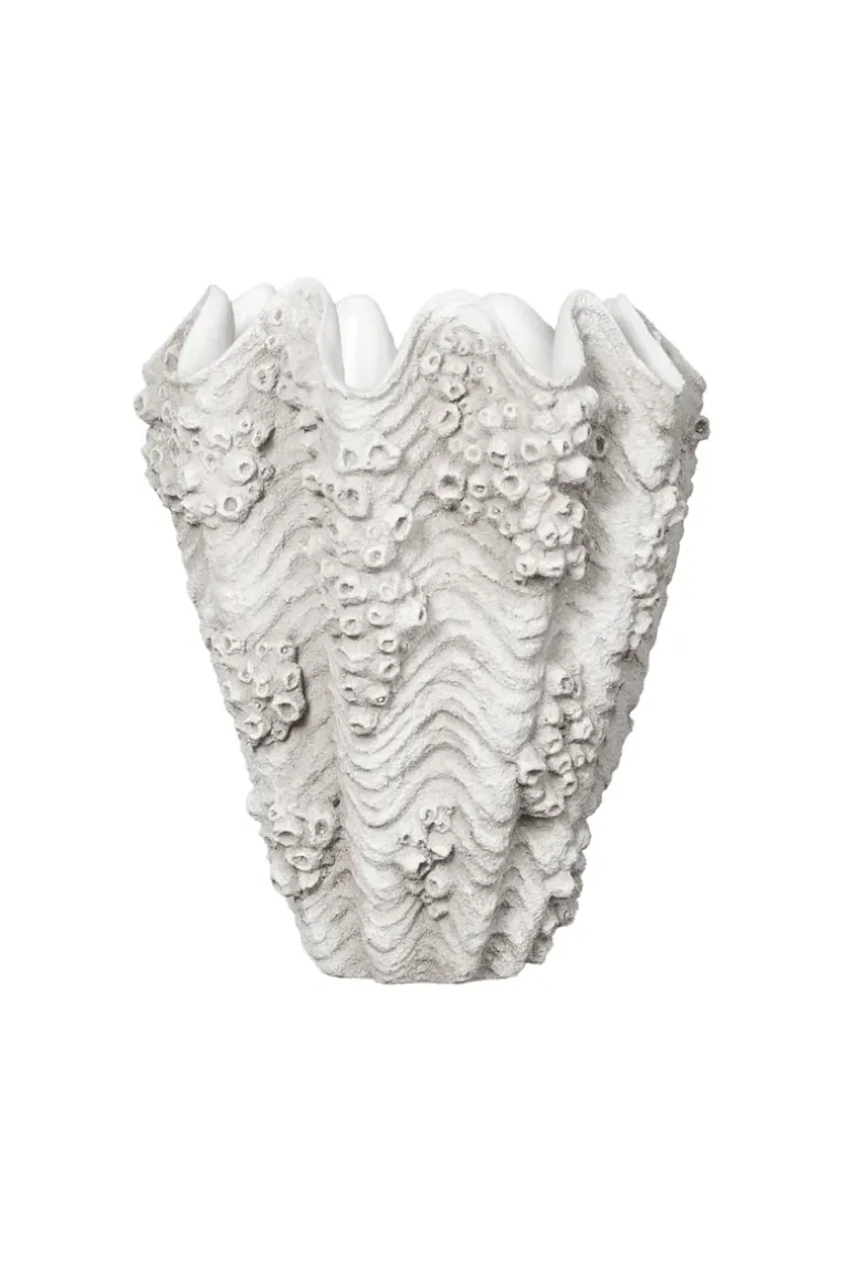 Naya vasen er en elegant kombination af moderne æstetisk design og inspiration fra naturens smukke elementer. Fremstillet af resin med en overflade inspireret af muslingens fine struktur, tilføjer vasen en organisk og sofistikeret detalje. Med sit unikke udtryk fungerer Naya vasen både som et funktionelt element og som et dekorativt statement-piece.