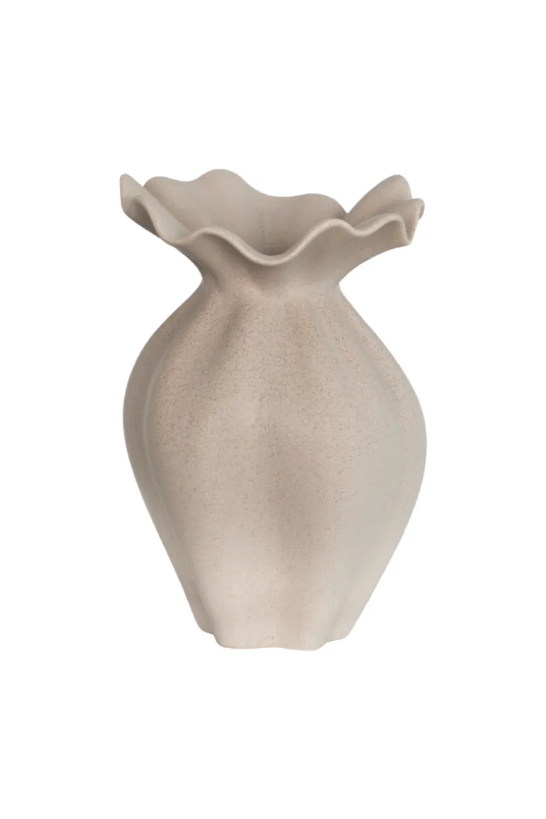 Nellie vasen er skabt i samme ånd som Nellie kanden. Denne håndlavede vase, lavet af keramik, er et kunstværk i sig selv. Den glatte overflade og bølgende linjer giver vasen et elegant og moderne udtryk. Inspireret af naturens skønhed er vasens åbning formet organisk.