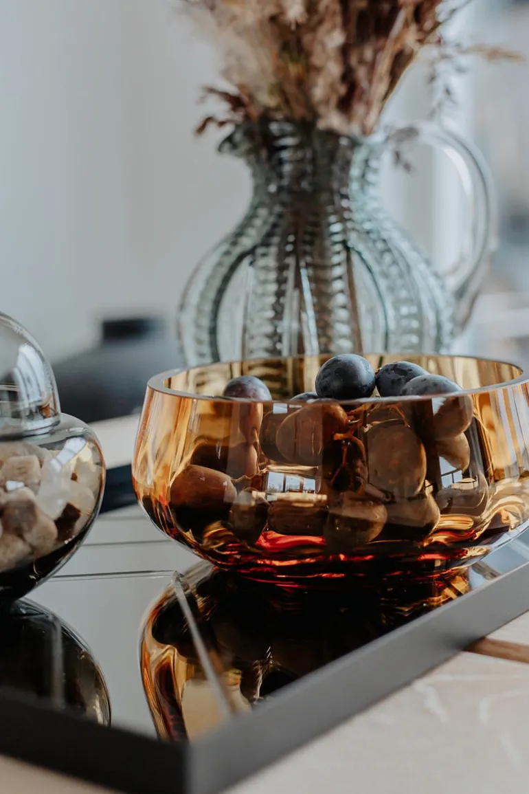 Specktra kollektionen forener traditionelle og rige håndværksteknikker med moderne luksus og elegance. Hele kollektionen er mundblæst og produceret i Europa. På grund af den håndlavede process er hver skål unik. Dette betyder, at der kan forekomme variationer i form af luftbobler, vægt og mønster fra skål til skål, hvilket er en del af håndværket, som vi elsker, værdsætter og beundrer.