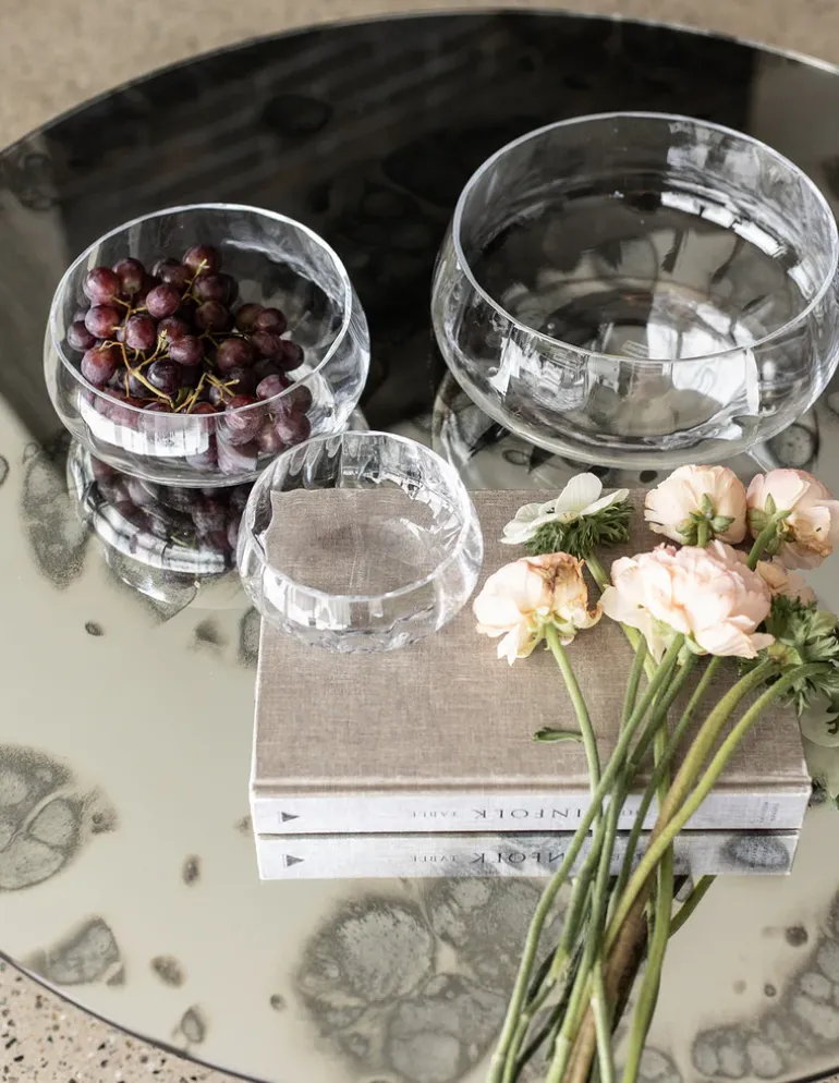 Specktra kollektionen forener traditionelle og rige håndværksteknikker med moderne luksus og elegance. Hele kollektionen er mundblæst og produceret i Europa. På grund af den håndlavede process er hver skål unik. Dette betyder, at der kan forekomme variationer i form af luftbobler, vægt og mønster fra skål til skål, hvilket er en del af håndværket, som vi elsker, værdsætter og beundrer.