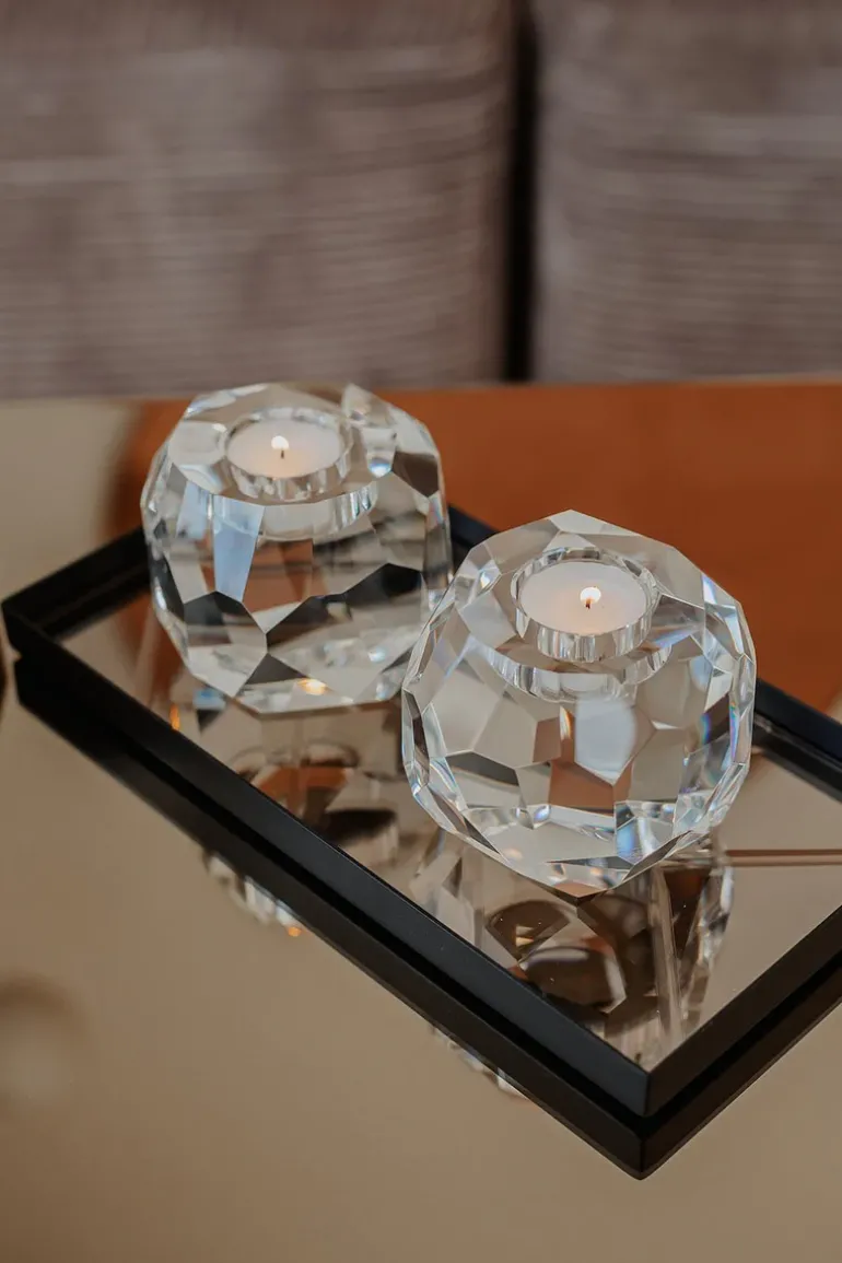 ‘Storm T-Light’ er en kollektion bestående af luksuriøse og dekorative asymmetriske krystal lysestager, som er tilgængelig i 6 unikke farver. Det brede specktrum af farvevarianter sikrer et utal af unikke styling muligheder.