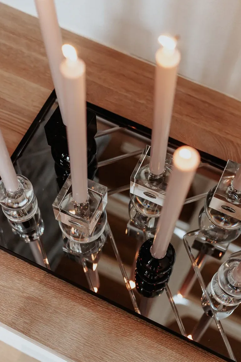 Herringbone bakken er designet til at være en eksklusiv og dekorativ tilføjelse til indretning, som kan anvendes i alle husets rum. Det facetslebne spejl, som er inspireret af det klassiske sildebensmønster, og den sorte metalramme forener det moderne med det klassiske.