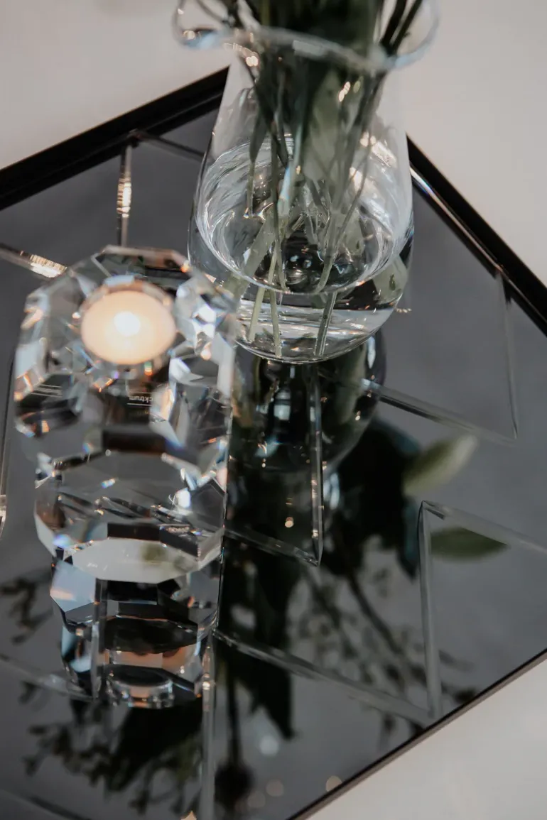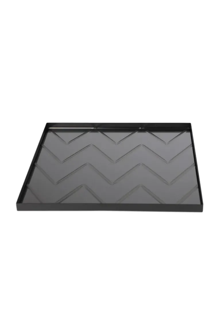 Herringbone bakken er designet til at være en eksklusiv og dekorativ tilføjelse til indretning, som kan anvendes i alle husets rum. Det facetslebne spejl, som er inspireret af det klassiske sildebensmønster, og den sorte metalramme forener det moderne med det klassiske.