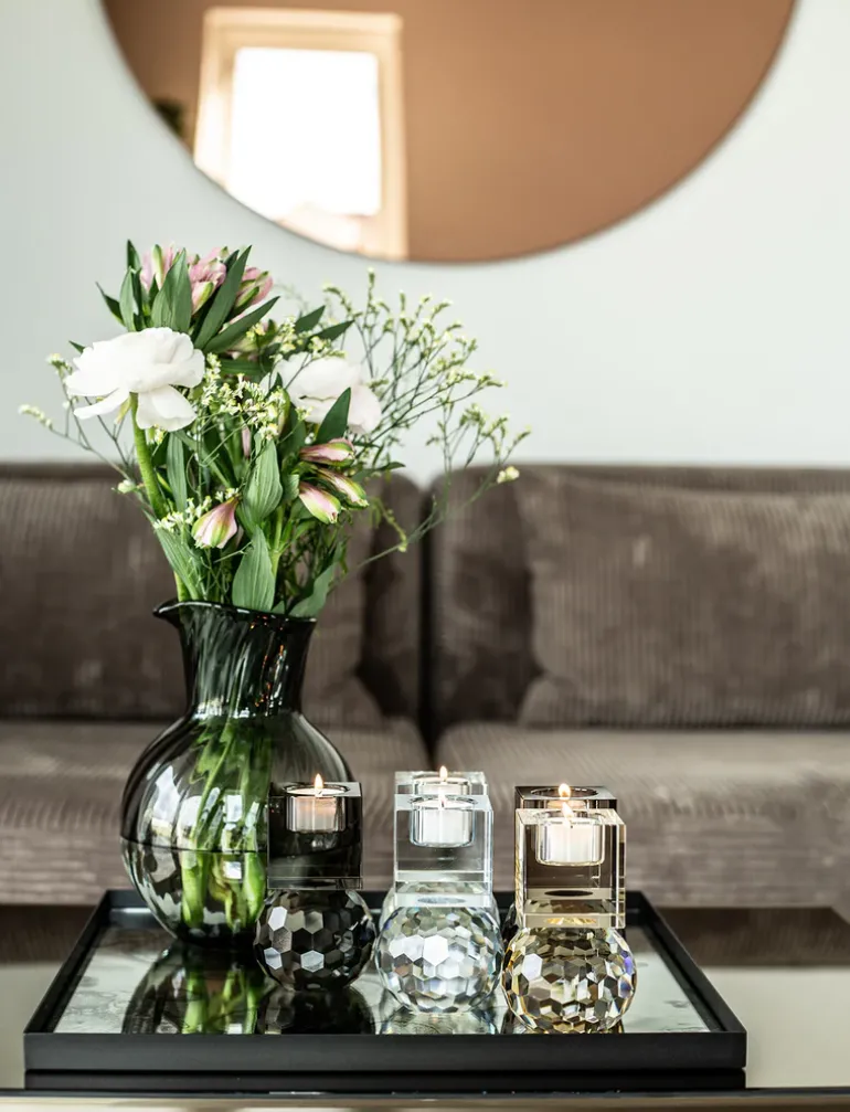 ‘Shadow T-Lights’ er en kollektion bestående af luksuriøse og dekorative krystal lysestager, som er tilgængelig i 8 unikke farver. Det brede specktrum af farvevarianter sikrer et utal af unikke styling muligheder.