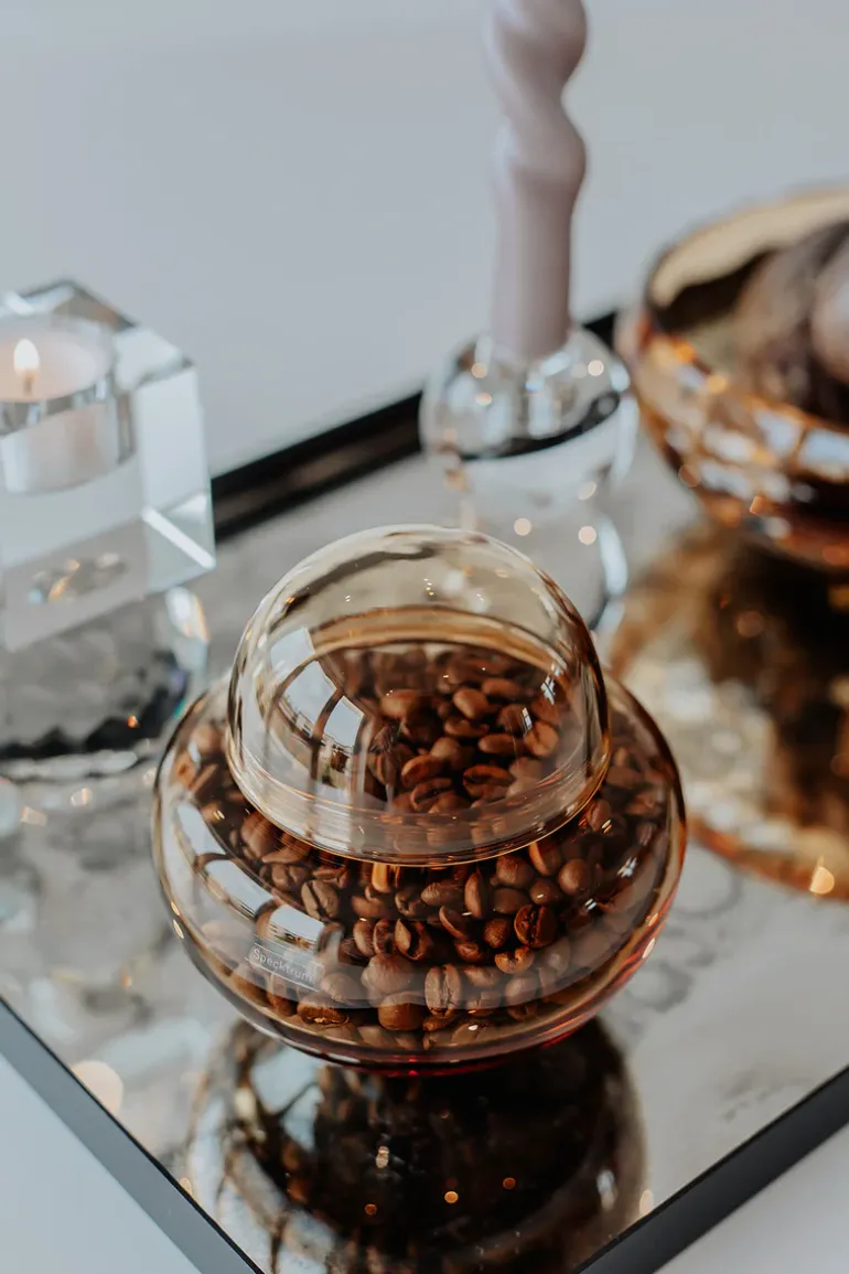 Kollektionen er designet i et bredt specktrum af farver med henblik på at sikre et utal af luksuriøse løsninger. Bonbonnieren er designet til at være et designobjekt, selv når den ikke er i brug. Indret derfor dit hjem med vores Vincent bonbonniere og lad den stå fremme på en hylde eller i et vitrineskab – selv når den ikke bruges til opbevaring.